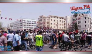 نفذ محتجون مسيرة جابت الشارع الرئيسي بولاية توزر اليوم الأحد في اطار تحرّك 25 جويلية الذين نادى الى تنظيمه