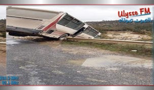 جد عشية اليوم السبت حادث إنزلاق حافلة مخصصة لنقل العمال على مستوى منطقة حلق الناب الواقعة بين صواف و