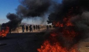 عمد اليوم الخميس 14 جانفي عدد من المعتصمين أمام حقل النفط الدولاب في ولاية القصرين الى اشعال العجلات المطاطية