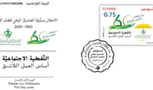 يصدر البريد التـونسي يوم 14 ديسمبر 2020، طابعا بريديا بمناسبة الاحتفال بالذكرى الستين لتأسيس الصندوق الوطني للضمان الاجتماعي تحت