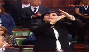 بعد دعوة رئيس الجلسة الافتتاحية للبرلمان الجديد إلى اداء القسم جماعيا راشد الغنوشي عبرت النائب عن الحزب الدستوري الحر