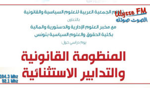 تنظم الجمعية العربية للعلوم السياسية والقانونية بالتعاون مع مخبر العلوم الادارية والدستورية والمالية اليوم الاثنين يوما دراسيا حول المنظومة