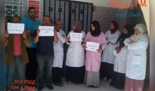 بدعوة من الاتحاد الجهوي للشغل بتطاوين ينفذ لليوم الثالث على التوالي أعوان وإطارات الدوائر الصحية برمادة وذهيبة وقفة احتجاجية