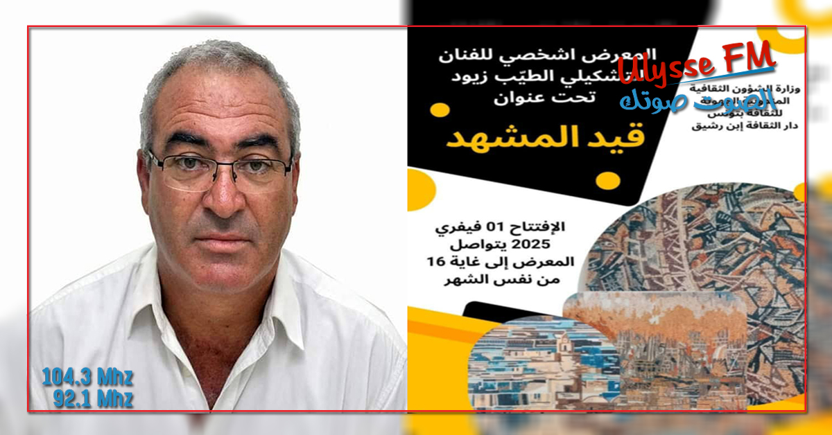 يستعد الفنان التشكيلي ابن جزيرة جربة الطيب زيود لتنظيم معرضه الفردي بدار الثقافة ابن رشيق بتونس العاصمة يوم غد السبت 1 فيفري 2025 علي ااساعة الثالثة بعد الزوال تحت عنوان ” قيد “المشهد .