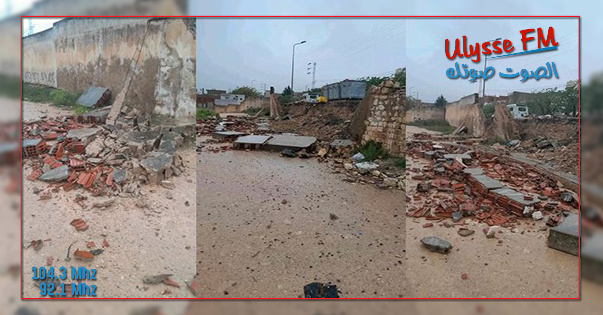 جد ليلة البارحة حادث انهيار جزء من سور المعهد الثانوي 8 فيفري 1958 بساقية سيدي يوسف من ولاية الكاف دون وقوع اضرار بشرية وفق ما افاد به معتمد ساقية سيدي يوسف و رئيس اللجنة المحلية لمجابهة الكوارث حسام عبد المؤمن .