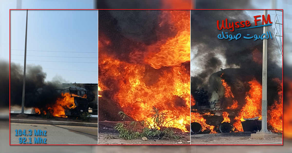 أكدت مصادر مطلعة لمراسلنا بمدنين ميمون التونسي في متابعة لحادثة احتراق شاحنة ليبية التي جدت بعد ظهر امس بمدينة مدنين أن الشاحنة كانت فارغة في اتجاه ولاية قابس عبر الطريق الحزامية لجلب الاسمنت المسلح لتصطدم بالرصيف الشي الذي أدى الي احتراقها من الامام والعجلات الامامية بالاضافة الي خزان الوقود دون حصول انفجار.