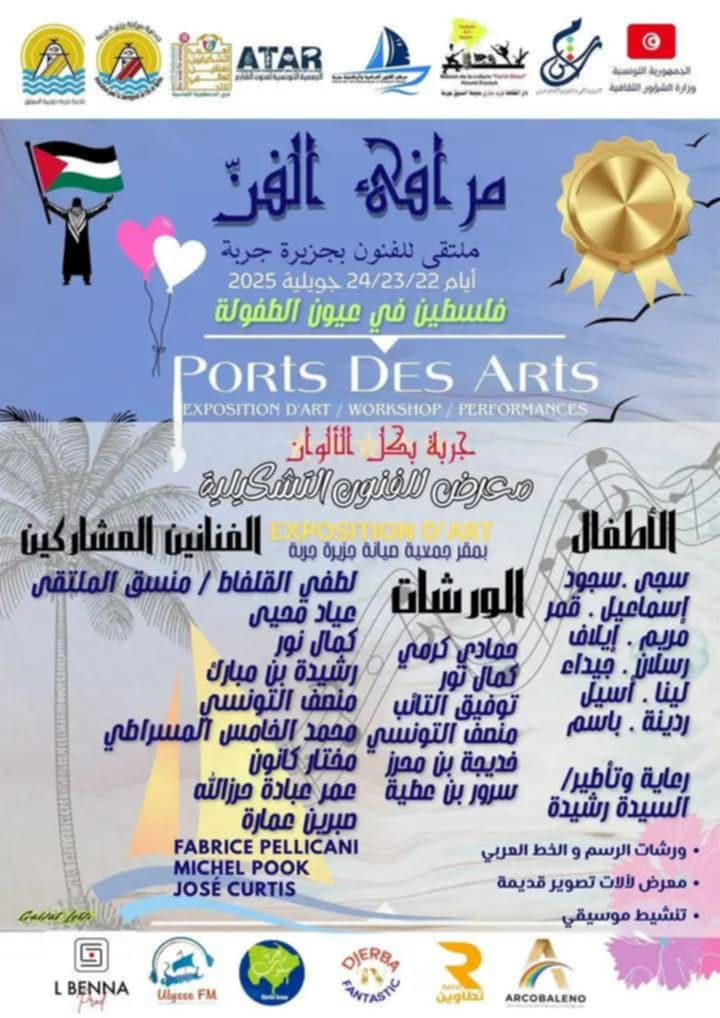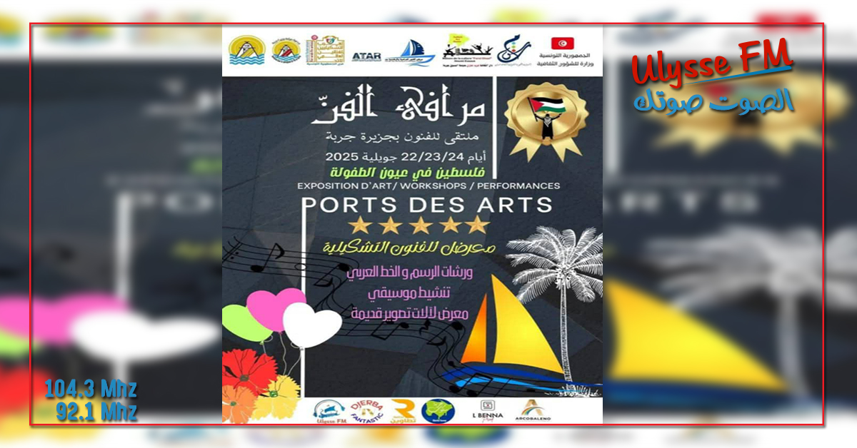 تعيش جزيرة جربة خلال الفترة المتراوحة من 22 إلى 24 جويلية 2025 على إيقاع الدورة الخامسة لملتقى “مرافئ_الفن”،