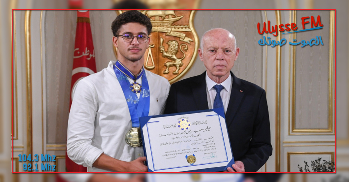 استقبل رئيس الجمهورية قيس سعيّد امسبقصر قرطاج، البطل التونسي أحمد الجوادي الذي فاز بميداليتين ذهبيتين في بطولة العالم للسباحة بسنغافورة.