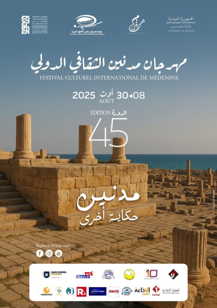 وفي ما يلي البرنامج الكامل للدورة 45 لمهرجان مدنين الثقافي الدولي الذي يقام تحت شعار مدنين حكاية اخري . *10 أوت : عرض حكاياتنا . *12 أوت: 24 عطر لمحمد علي كمون . *14 أوت: عرض عراقي *16 أوت: الزيارة. *18 أوت: بلطي *19 أوت: فلسفة لياسين الصالحي عرض مسرحي *20 أوت: مرتضى الفتيتي *22 أوت : كريم الغربي. *23 أوت: مدنين تغني. *25 أوت: كازو. *26 أوت: رؤوف ماهر.