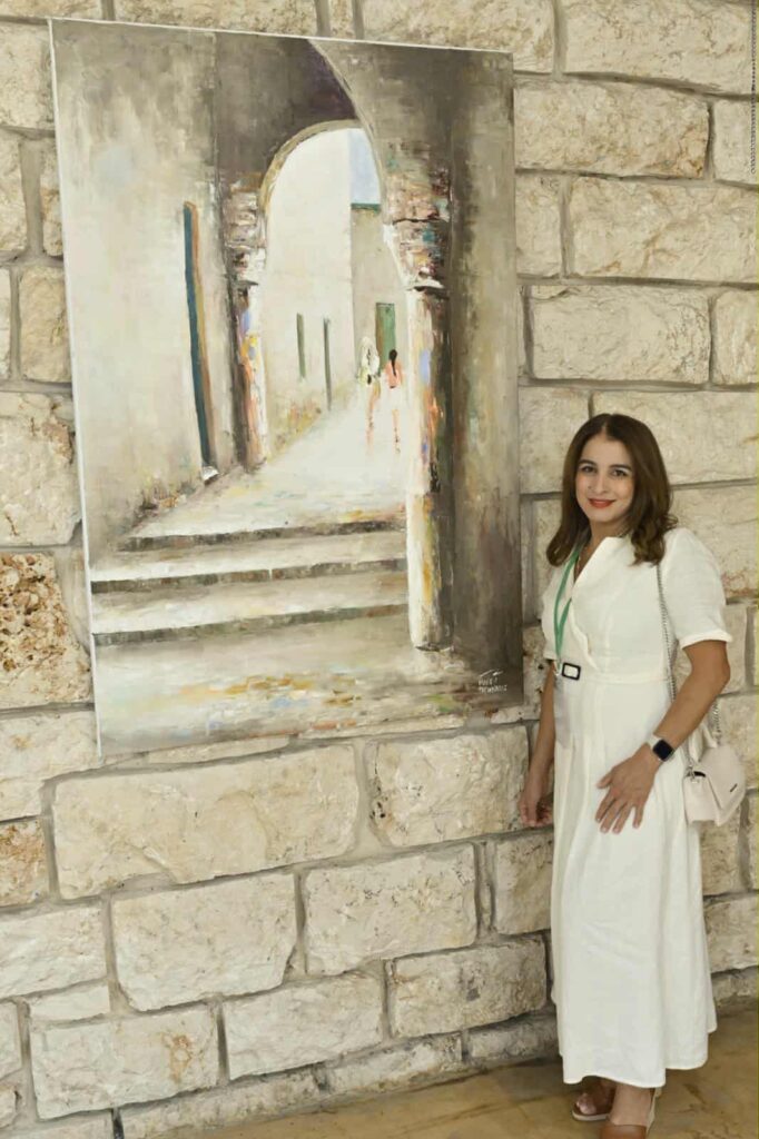وأكدت على دور الفن وكل فنان في تعزيز قيم التلاقي والتسامح والسلام والحب بين الشعوب من خلال اللوحات والشعر والغناء والمسرح والنحت لترك بصمة .