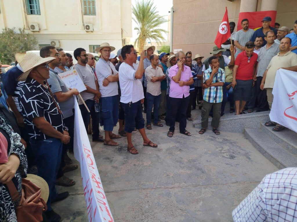 دفاعا عن حق التفاوض و الحقوق النقابية بحسب الحبيب الزموري المكلف بالاعلام بالاتحاد الجهوي للشغل بمدنين لمراسلنا ميمون التونسي .