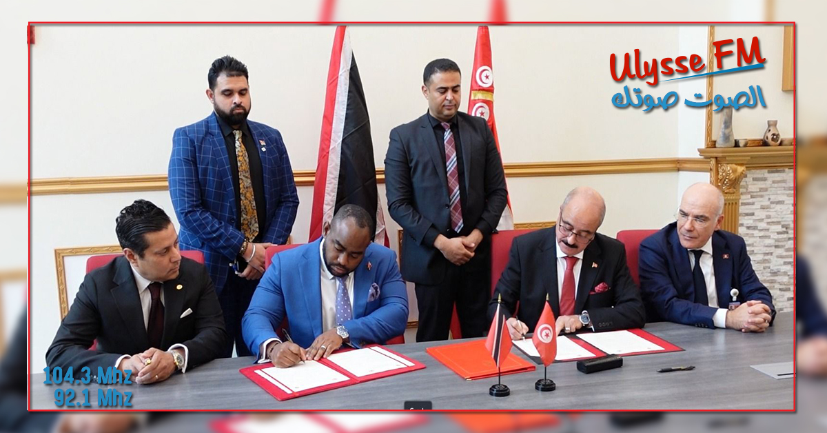 قام وزير الشؤون الخارجية والهجرة والتونسيين بالخارج محمد علي النفطي، أمس، بتوقيع إعلان مشترك حول إقامة علاقات دبلوماسية بين الجمهورية التونسية وجمهورية ترينيداد وتوباغو، مع نظيره وزير الخارجية وشؤون الكراييبي بحكومة ترينيداد وتوباغو، وذلك في إطار تعزيز شبكة العلاقات الدبلوماسية بين تونس وسائر دول العالم.