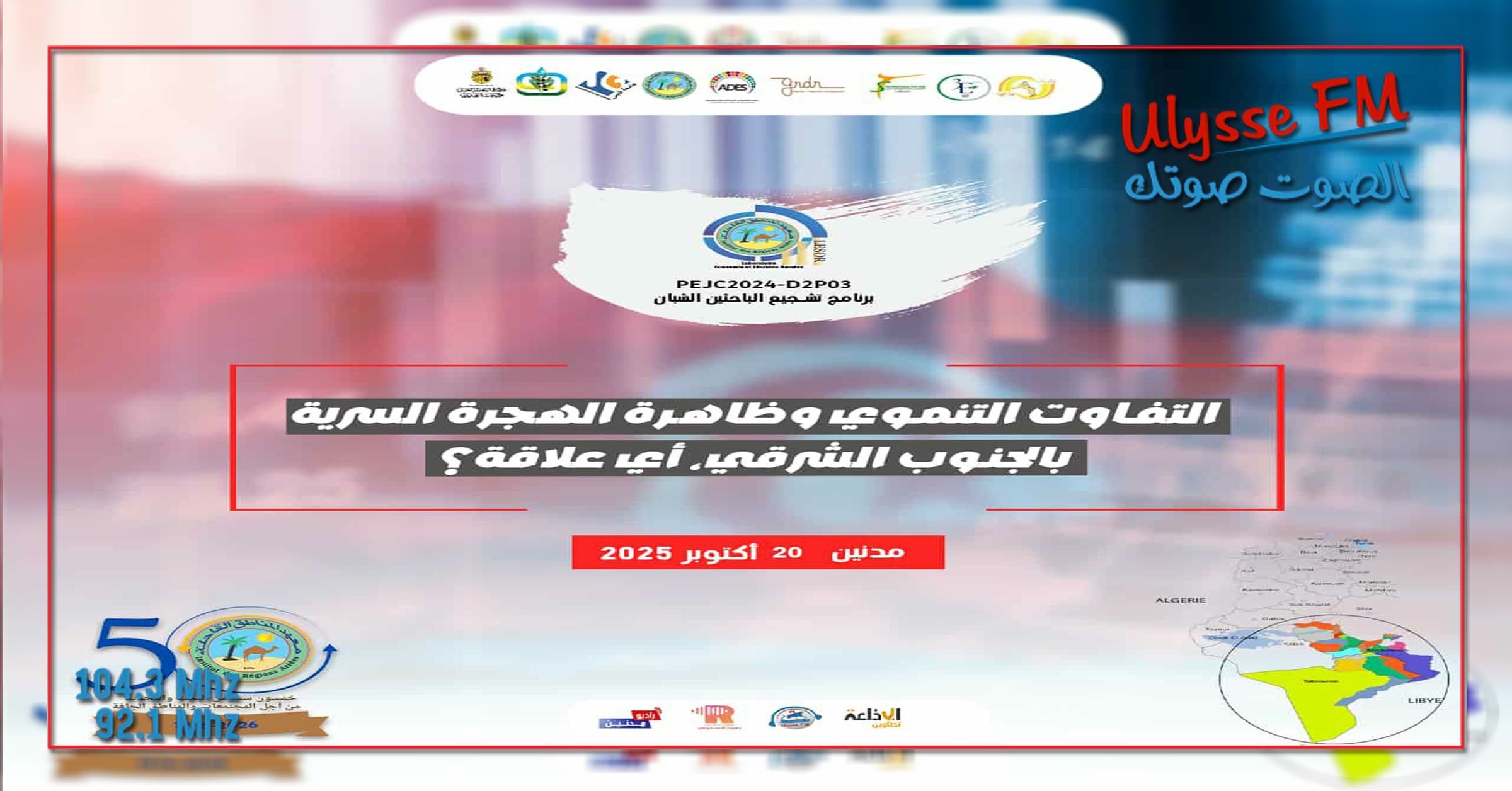 تتواصل في إطار برنامج تشجيع الباحثين الشبان الاستعدادات بمخبر الاقتصاد والمجتمعات الريفية بمعهد المناطق القاحلة بمدنين لتنظيم ملتقى وطني حول موضوع : التفاوت التنموي وظاهرة الهجرة السرية، أي علاقة ؟.