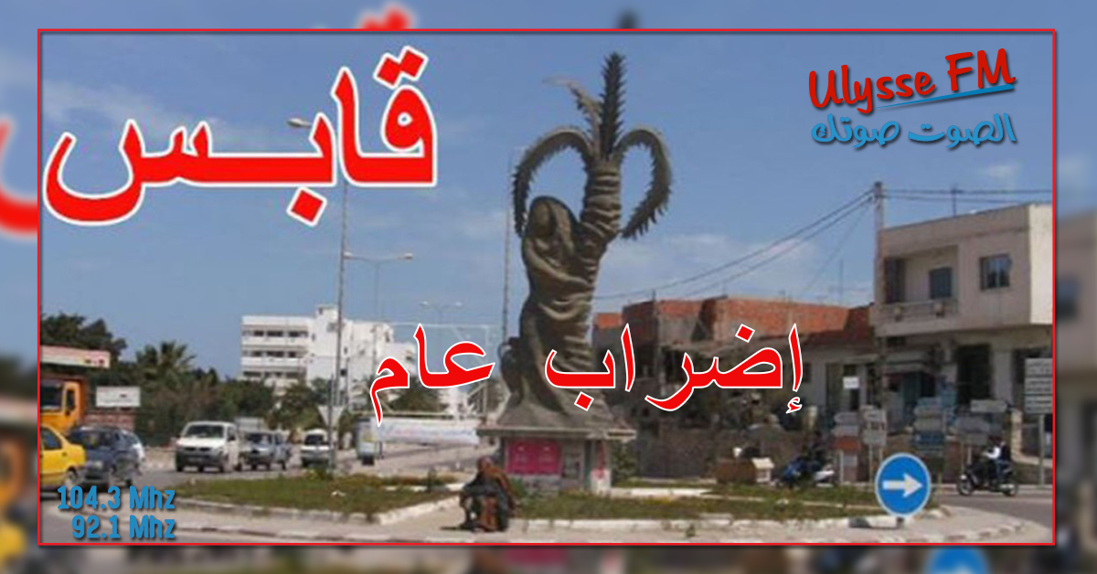 تقرر غدا الثلاثاء الاضراب العام الجهوي في ولاية قابس على خلفية تأزم الوضع البيئي و تواتر حالات الاختناق في صفوف الأهالي على خلفية تسربات انبعاثات الغاز لوحدات المجمع الكيمائي بقابس