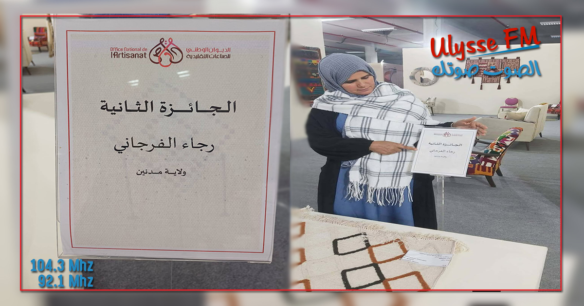 تحصلت الحرفية في صناعة الزربية رجاء الفرجاني اصيلة مدينة بنقردان على الجائزة الثانية فيالمسايقة الوطنية للابتكار في النسيج بمعرض الزربية بالكرم