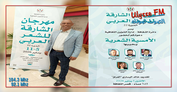 حل الشاعر مبروك السياري أصيل معتمدية بن قردان من ولاية مدنين ضيفا على مهرجان الشّارقة للشّعر العربي من 5 إلى 11 جانفي 2026، بدعوة كريمة من مدير المهرجان مدير بيت الشّعر بالشّارقة الشاعر محمد عبدالله البريكي .