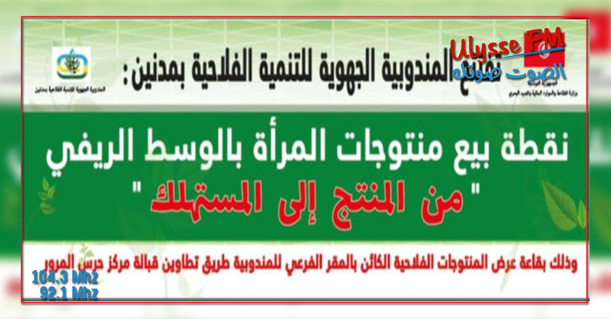 استعدادا لاستقبال شهر رمضان الكريم، افتتحت المندوبية الجهوية للتنمية الفلاحيةبمدنين، بداية من اليوم، نقطة بيع من المنتج الى المستهلك، تتواصلعلى امتداد الشهر الكريم، وتوفر منتوجات فلاحية مختلفة، وذلك بالفضاء الفرعي للمندوبية بطريق تطاوين بمدينة مدنين.