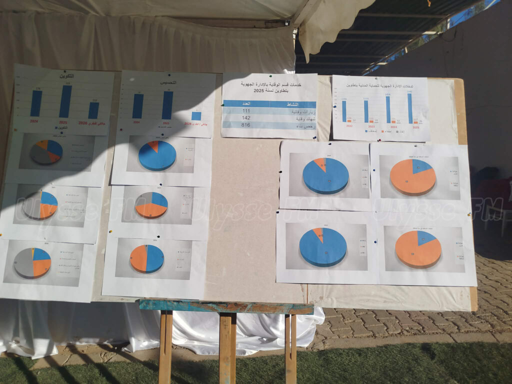 وأضاف العميد بأن الادارة ركزت على التحسيس و التكوين حيث كانت 225 حصة تكوين فيه سنة 2025 لفائدة المؤسسات الوطنية ، المؤسسات الصناعية،المشاريع الخاصة سائقي النقل الخاص و العمومي بالاضافة الى 30 حصة تحسيس .